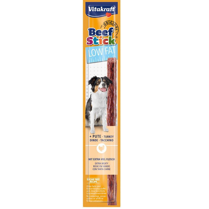 De Vitakraft Beef Stick overtuigt hond en baasje door topkwaliteit, een heerlijke geur en een zeer hoog vleesgehalte en dat alles met een unieke smaak. Ideaal om te verwennen, te belonen en voor de kleine trek tussendoor! De Beef Stick Low Fat is de perfecte snack om honden met gewichtsproblemen te verwennen. Het bevat 20% minder vet dan de Beef Stick rund en bevat bovendien L-carnitine dat de vetverbranding stimuleert.